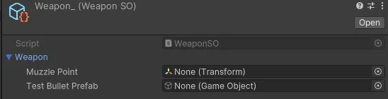 그러나 MuzzlePoint를 정해진 위치에 할당해야 하기 때문에 SO에 Transform으로 MuzzlePoint를 할당 할 방법이 생각나지 않음…