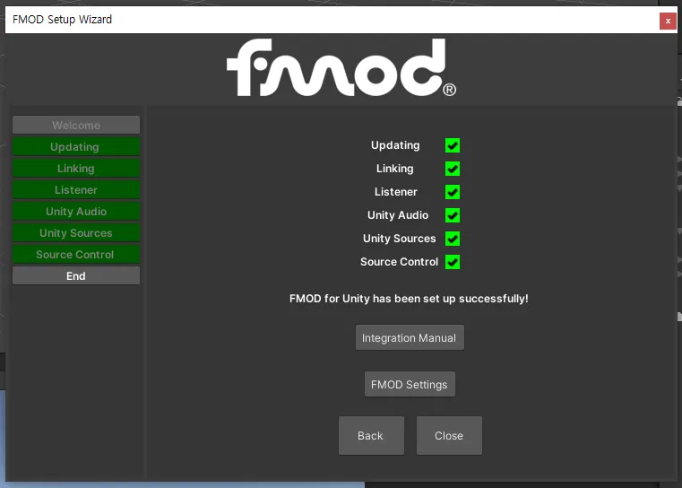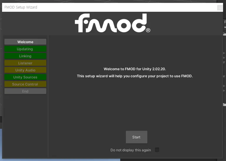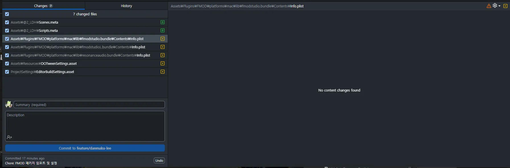 FMod 초기화를 위한 세팅창이 뜨는 것과 GithubDeskop에서 Changes 목록이 뜨는 것은 관계 없음.