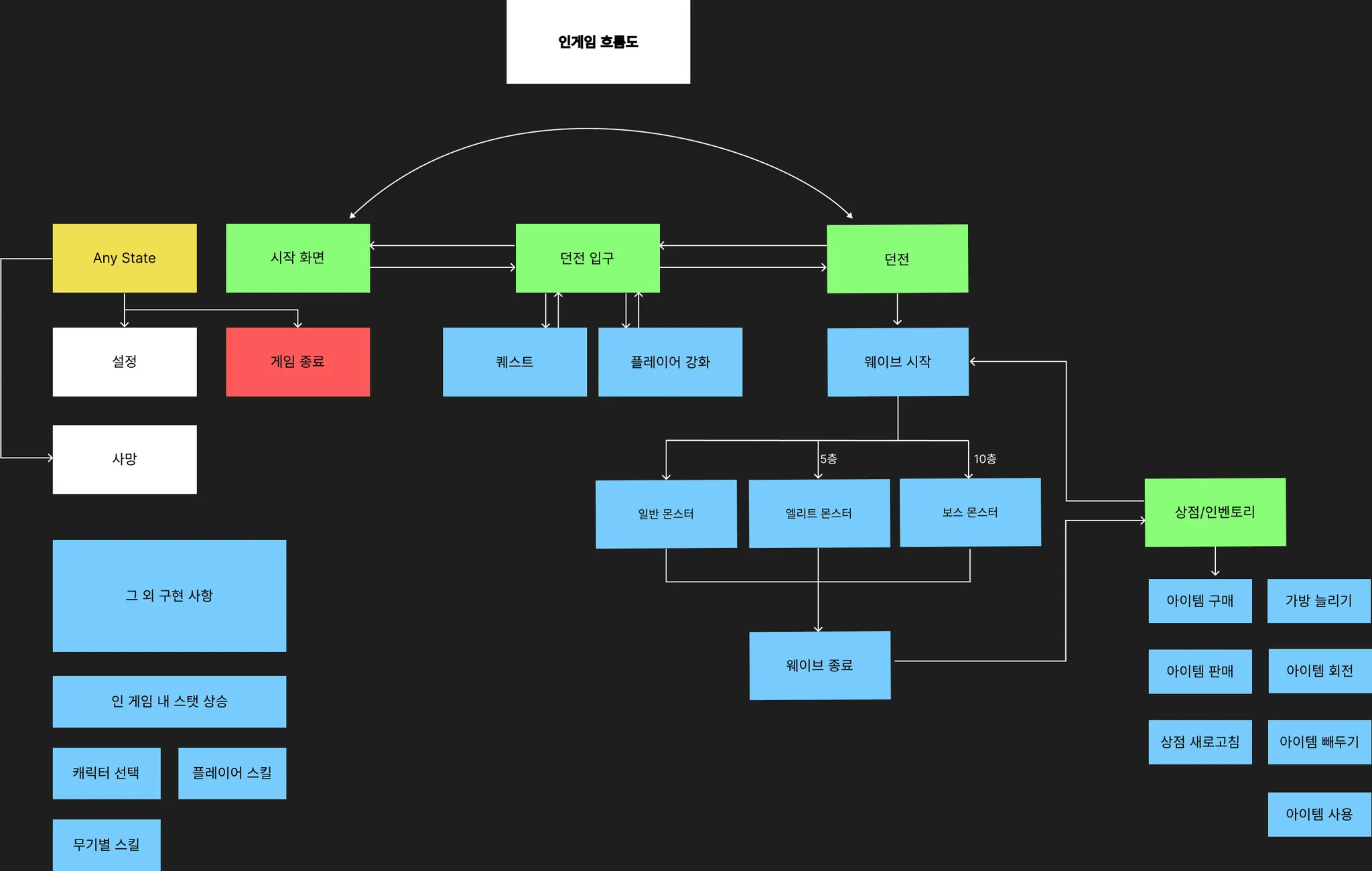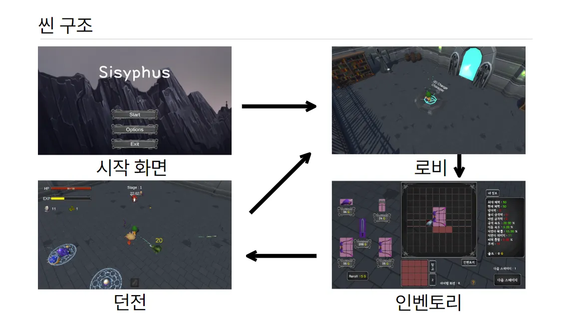 ๋งต : ํ๋ ์ด์ด๊ฐ ์บ๋ฆญํฐ ์ ํ ๋ฐ ๊ฐํ๋ฅผ ์งํํ ์ ์๋ ์์ ๋งต๊ณผ ์จ์ด๋ธ๋ฅผ ์งํํ๋ ์คํ