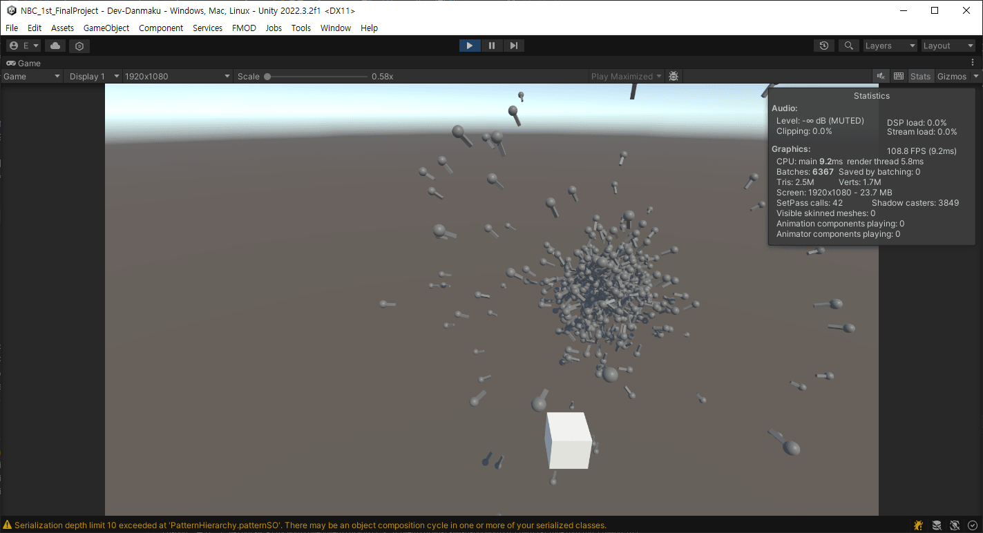 자연발생한 탄막도 분열함에 따라 오브젝트의 갯수가 기하급수적으로 늘어남