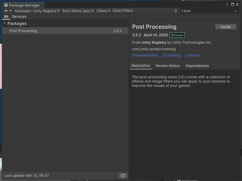 어지간히 안된다 싶었더니, URP 프로젝트에서는 이전 포스트 프로세싱은 호환이 안된다고 한다. 뻘짓 함