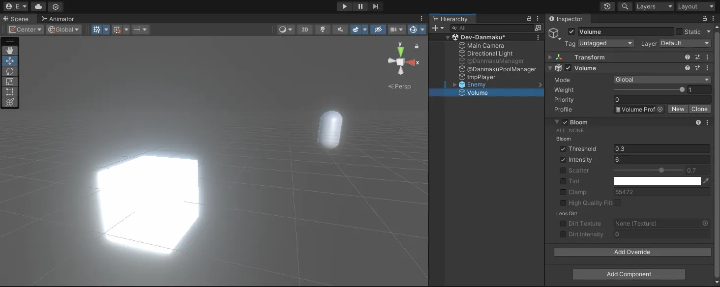 대신 씬내 오브젝트에 Volume 라는 컴포넌트를 추가해서 포스트 프로세싱과 같은 역할을 쥐여줄 수 있다. 빈 오브젝트 하나 만들어서 적용했다.