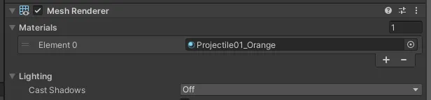 탄막의 Mesh Renderer와 Trail의 Renderer에서 Cast Shadows를 모두 Off로 바꿔준다.