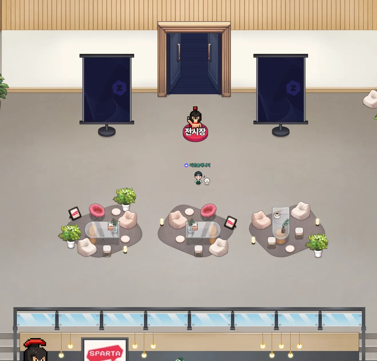 채용관련 커피챗 혹은 휴식이 필요한 경우 전시회장 상단의 공간을 활용해주시면 됩니다.