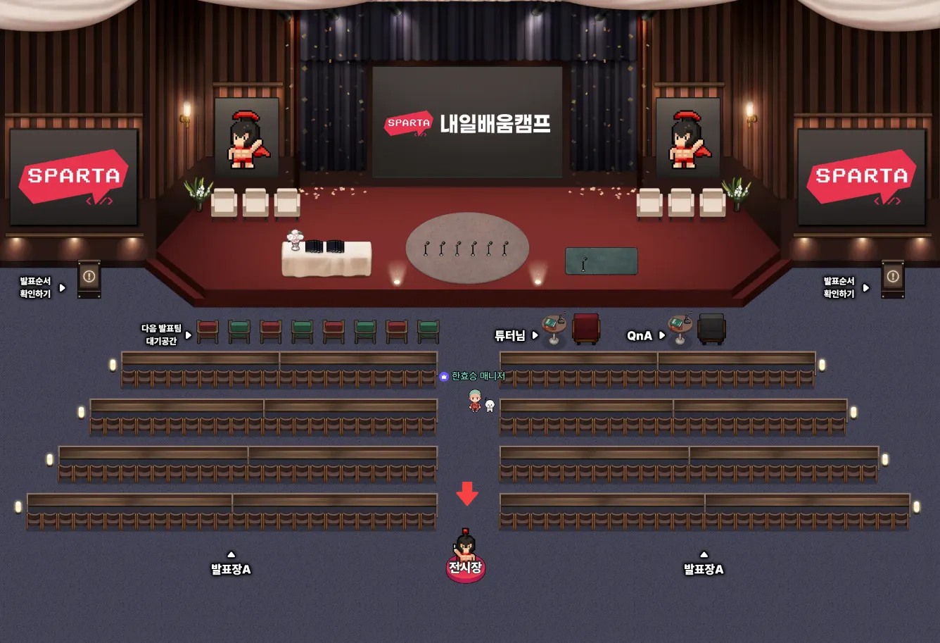 질문이 있으신 경우, 발표 종료 후 아래 공간으로 이동해서 마이크를 켜고 질문해주시면 됩니다. 혹은 마이크 사용이 부담스럽다면 편하게 ZEP 채팅을 통해 질문해주세요.