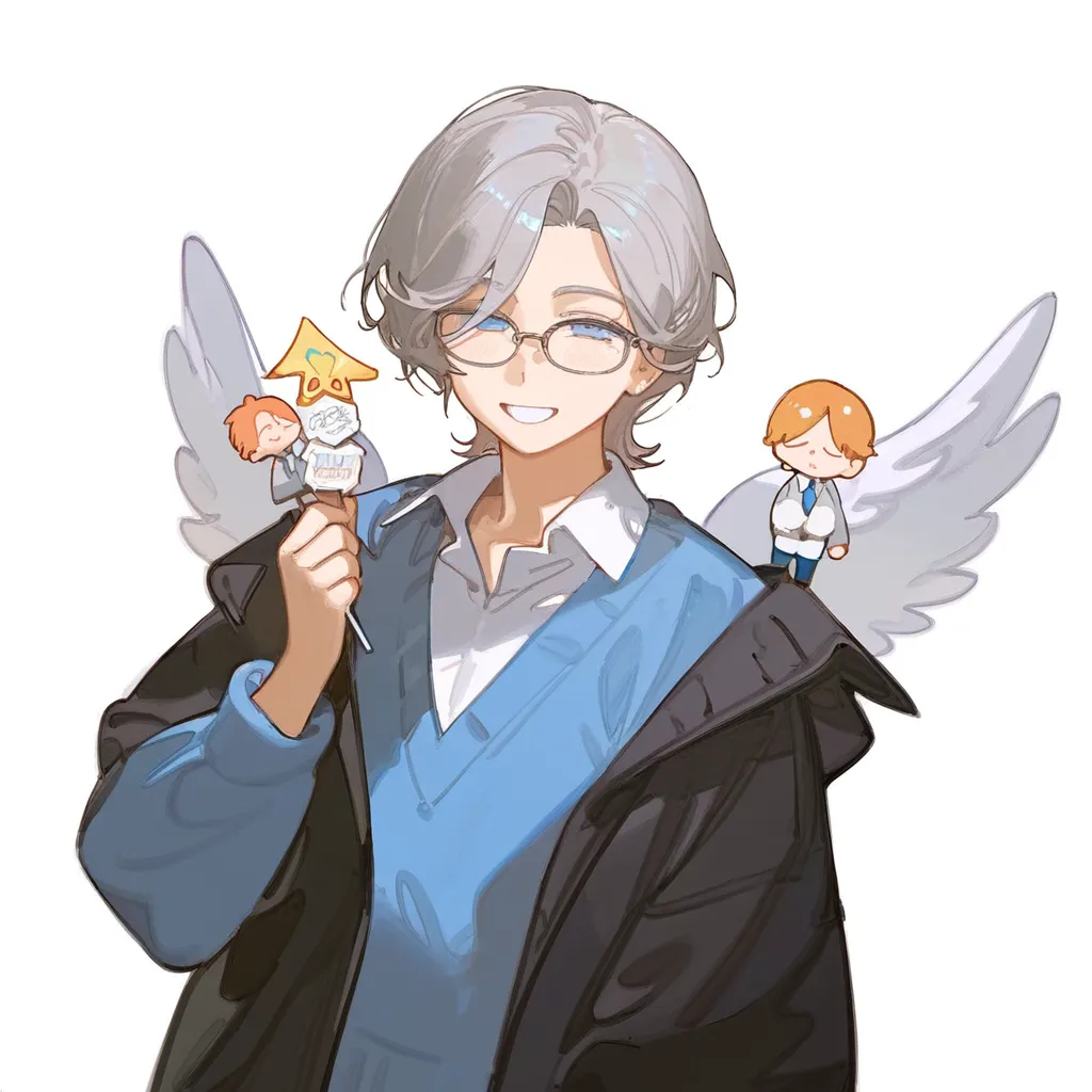 [[mx2j]], {{{ame (uten_cancel)}}}, {{{[artist:ciloranko]}}}, {{{artist:ask (askzy)}}}, {{{artist:freng}}}, {{{artist: rella}}}, {{{year 2023}}}, wings, silver hair, eye glasses,